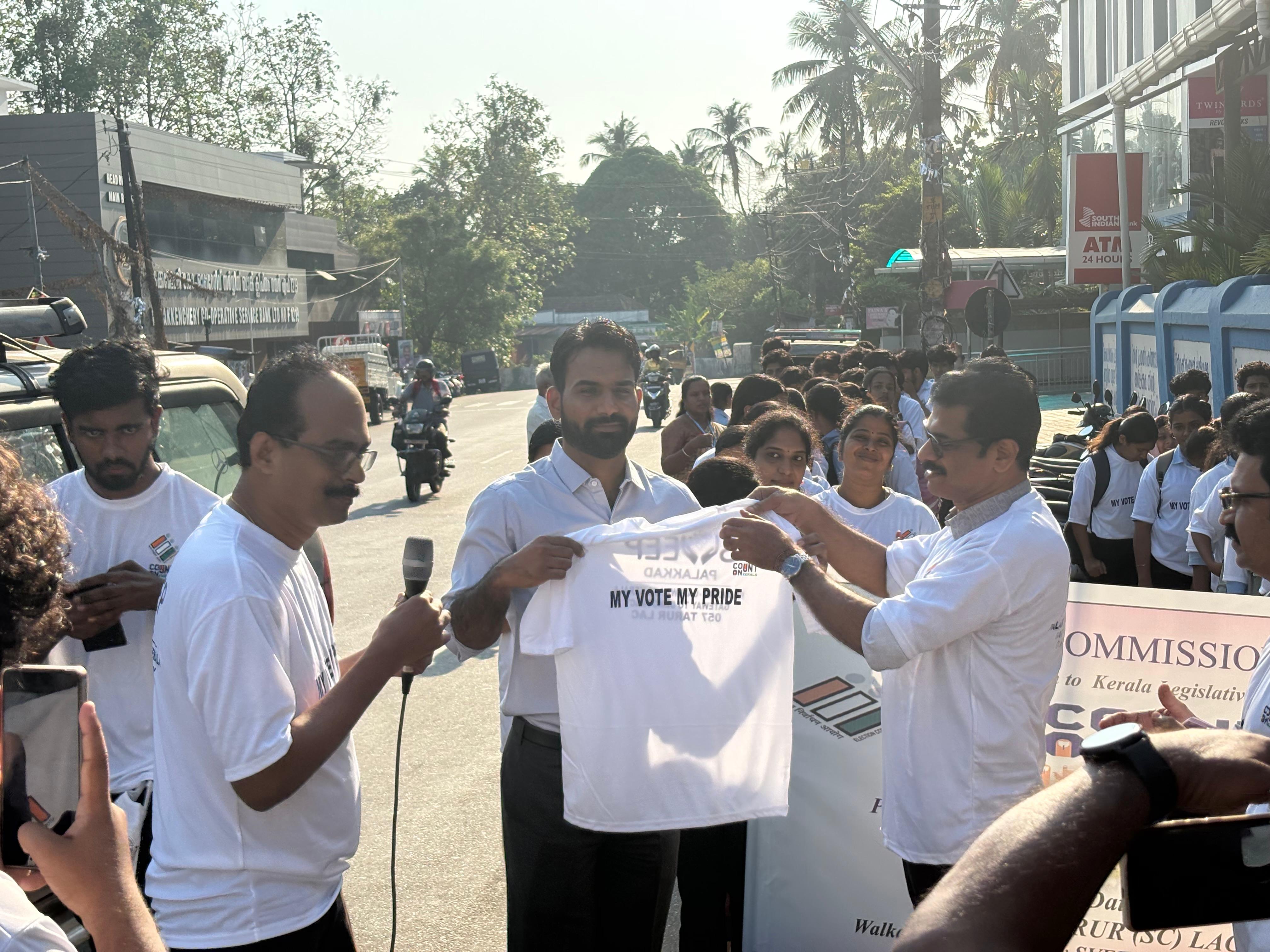 The climax of the event took place at the Vadakkencherry Bus Stand, the town’s busiest hub. In a powerful display of unity, the participants gathered to take the Voter’s Pledge.